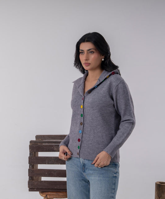 Timeless and effortlessly refined, this grey cable-knit cardigan is designed to bring warmth, texture, and everyday elegance into one versatile layer. Crafted with intricate cable and diamond knit detailing, it offers a beautifully structured yet soft silhouette that feels as good as it looks. The rounded neckline and tonal button...