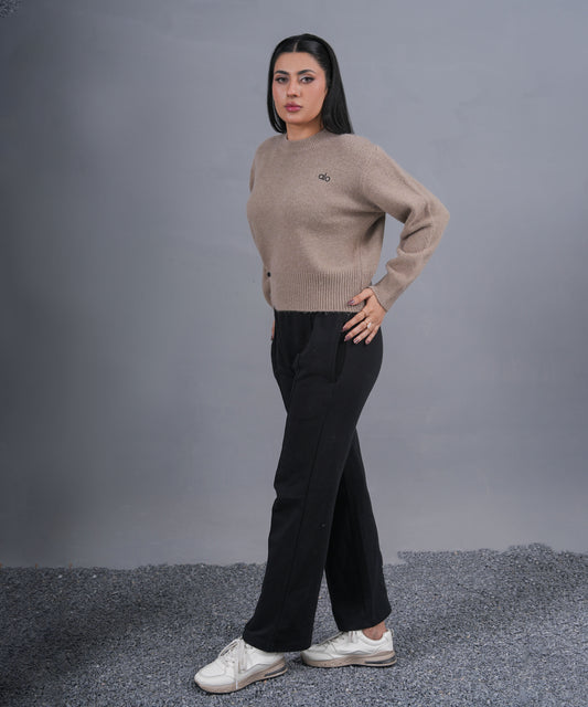 A modern knit pullover designed with subtle detailing and everyday comfort in mind. Crafted in a soft sandstone beige tone, this piece features a clean ribbed knit texture with a classic round neckline for a timeless silhouette. The standout detail lies in the asymmetric hemline with side button accents, adding...