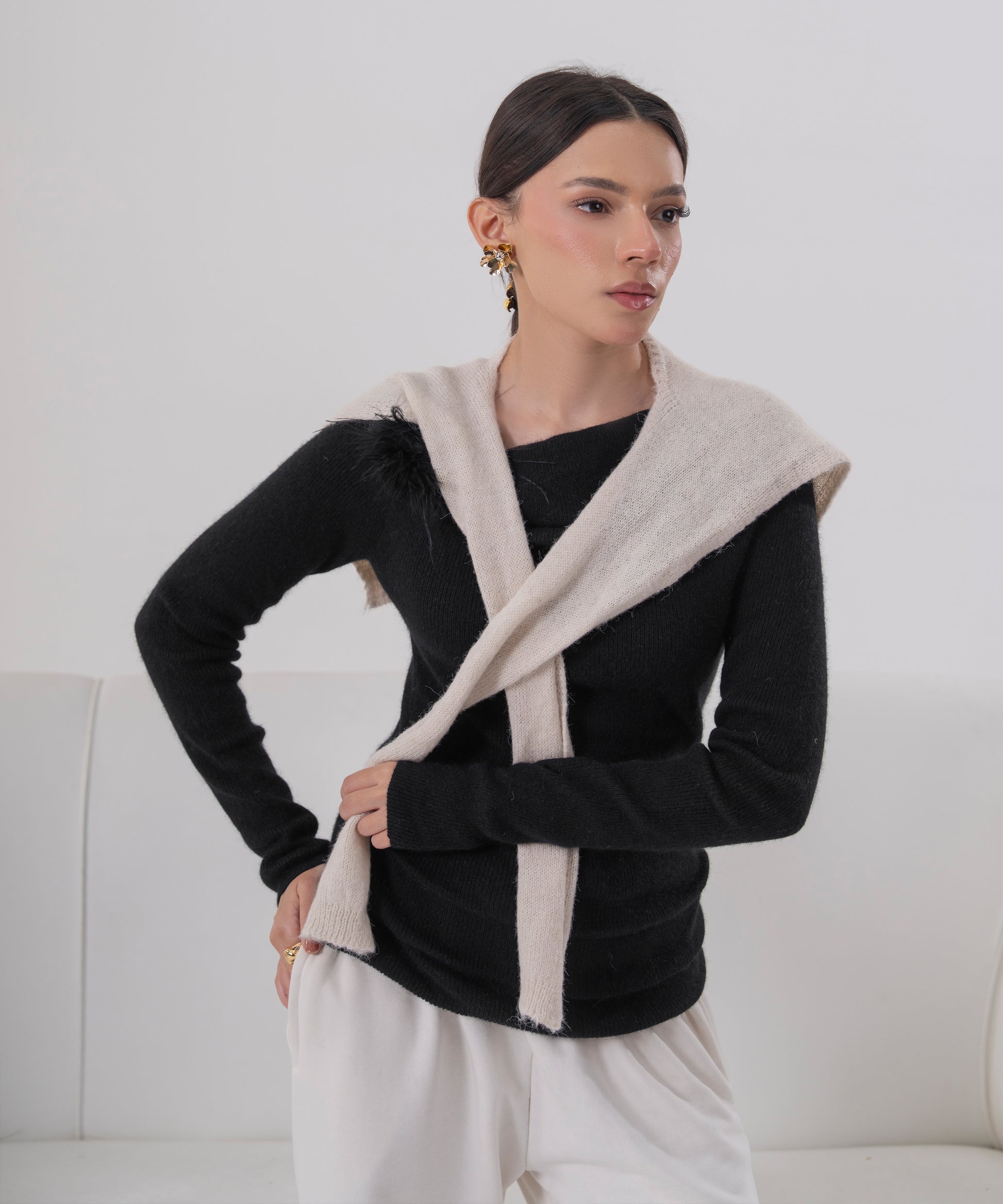 Bold yet effortlessly elegant, this black one-off shoulder knit dress is designed to make a statement with minimal effort. Featuring a sleek asymmetrical neckline, it beautifully highlights the shoulder while maintaining a refined, modern silhouette.