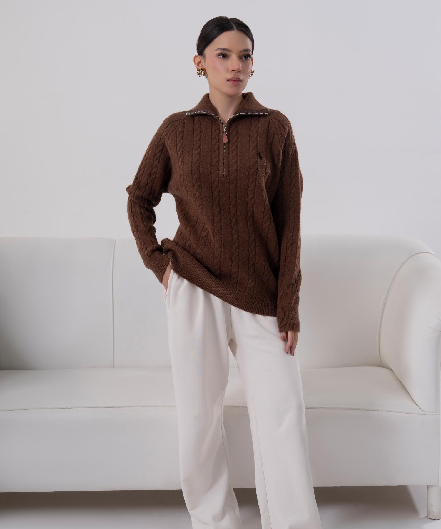 A modern knit pullover designed with subtle detailing and everyday comfort in mind. Crafted in a soft sandstone beige tone, this piece features a clean ribbed knit texture with a classic round neckline for a timeless silhouette.