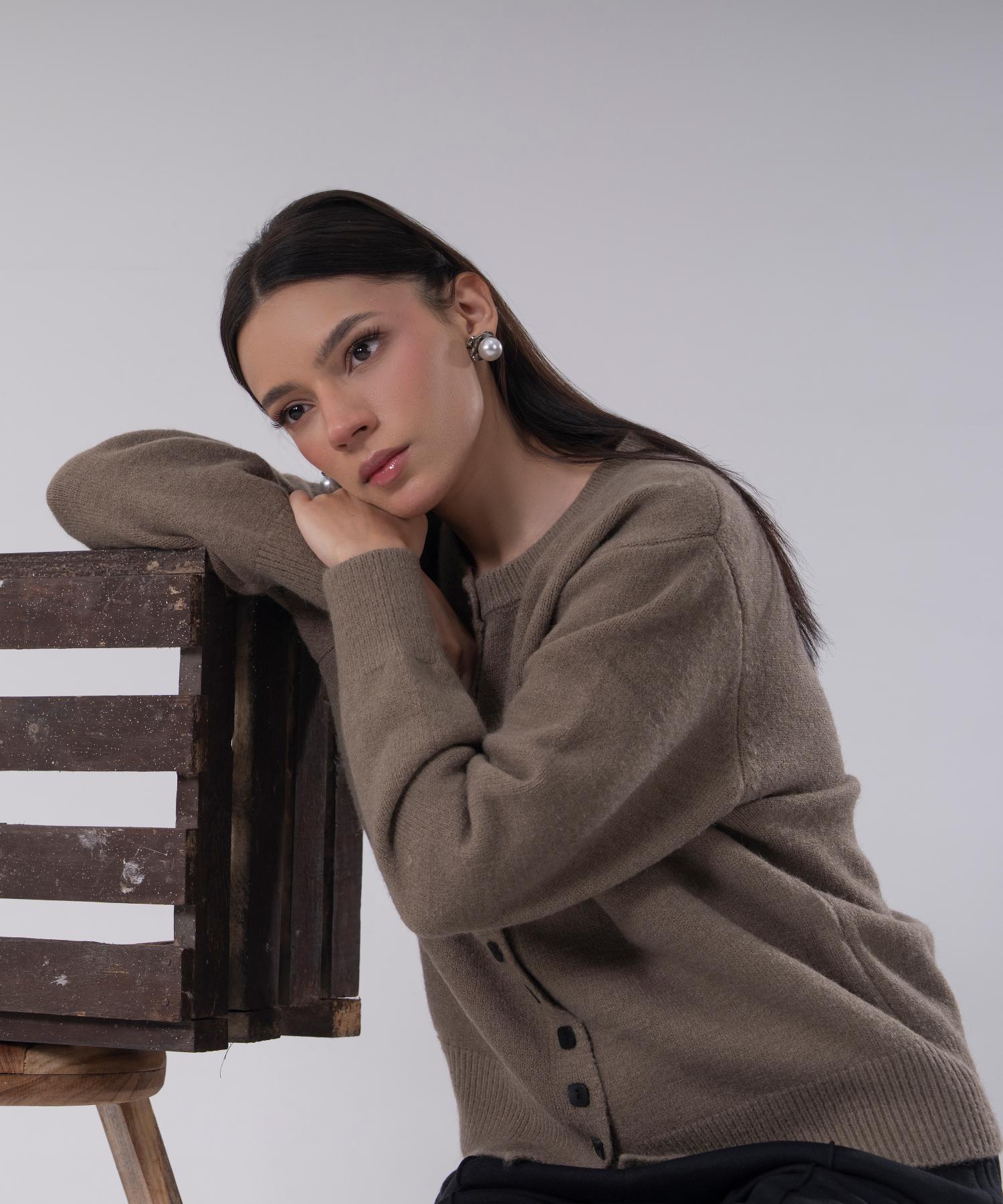 Designed for warmth with elevated elegance, this ivory knit jacket features a plush faux fur collar that adds instant luxury to a timeless silhouette. The soft textured upper contrasts beautifully with the ribbed knit lower half, creating a refined layered look in a single piece.