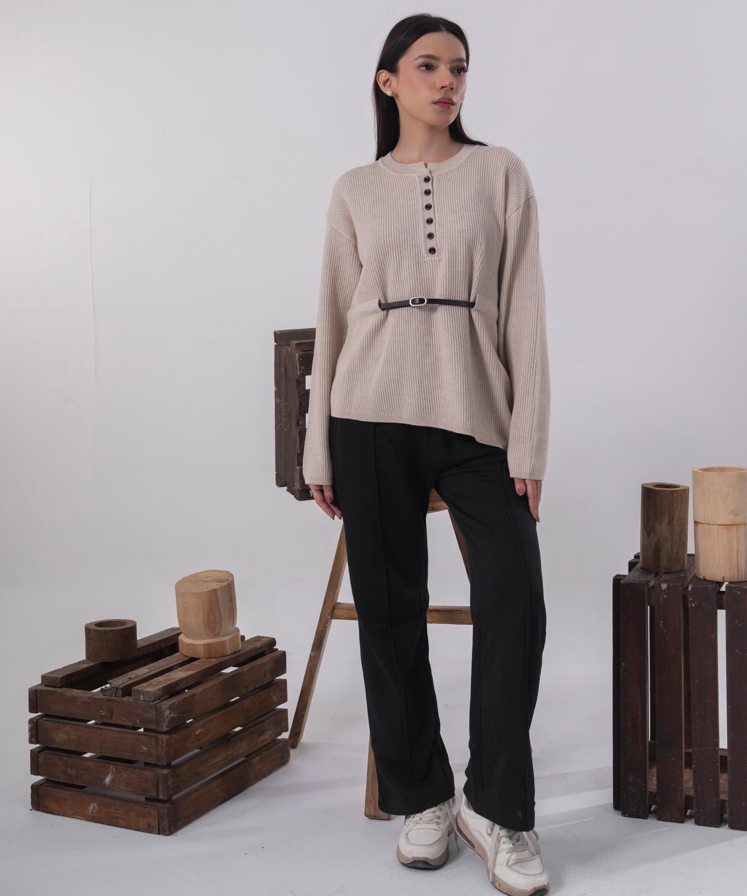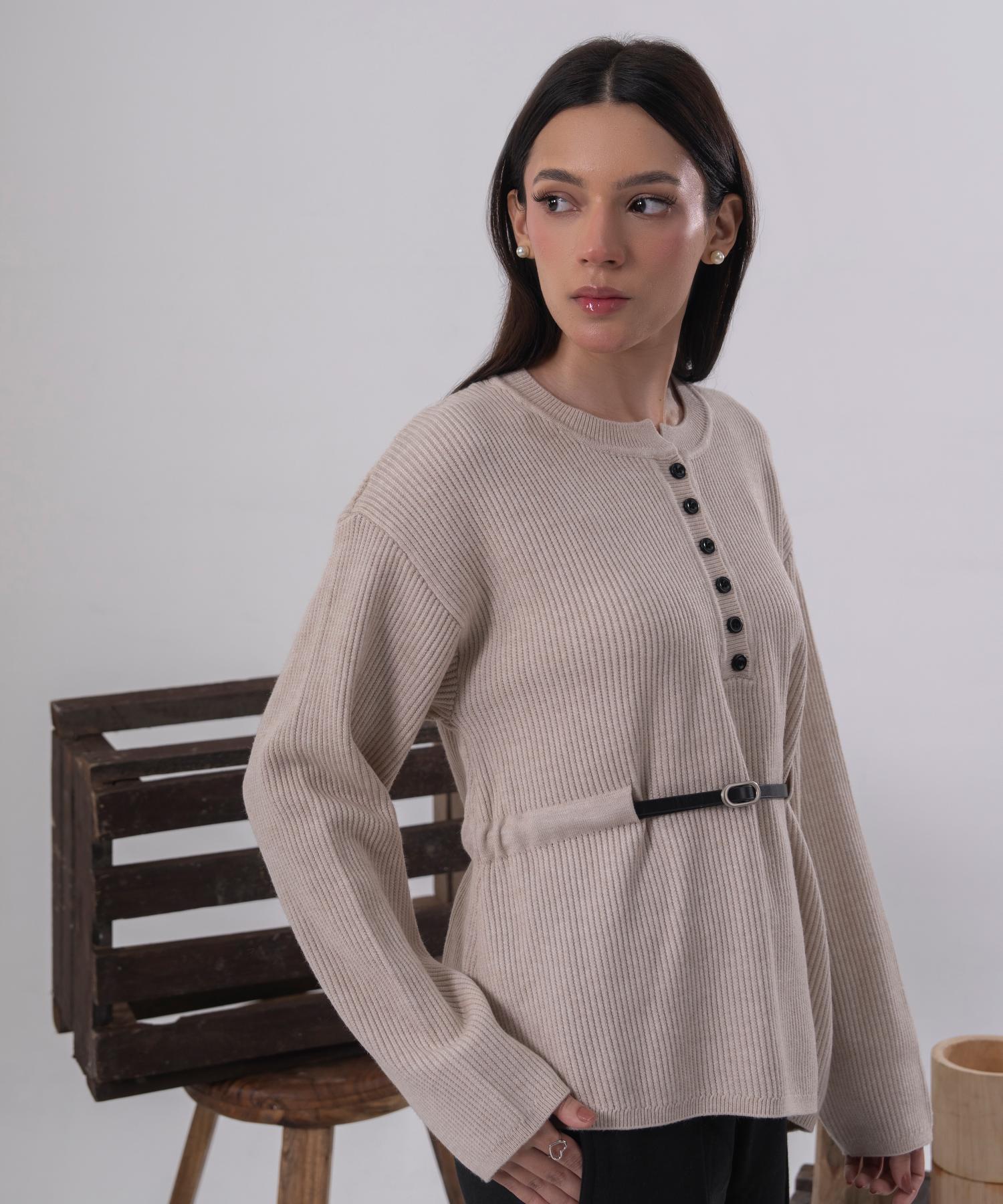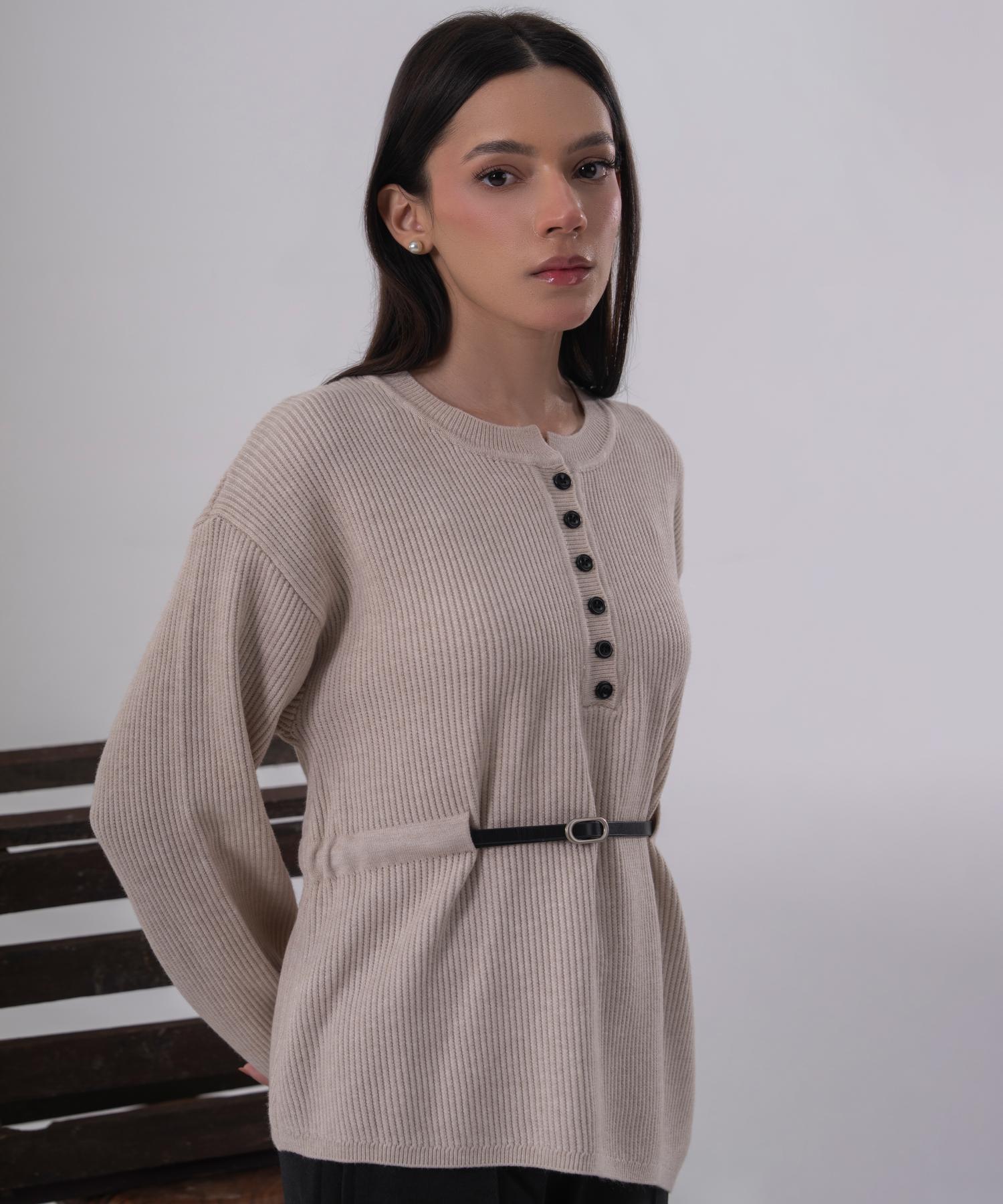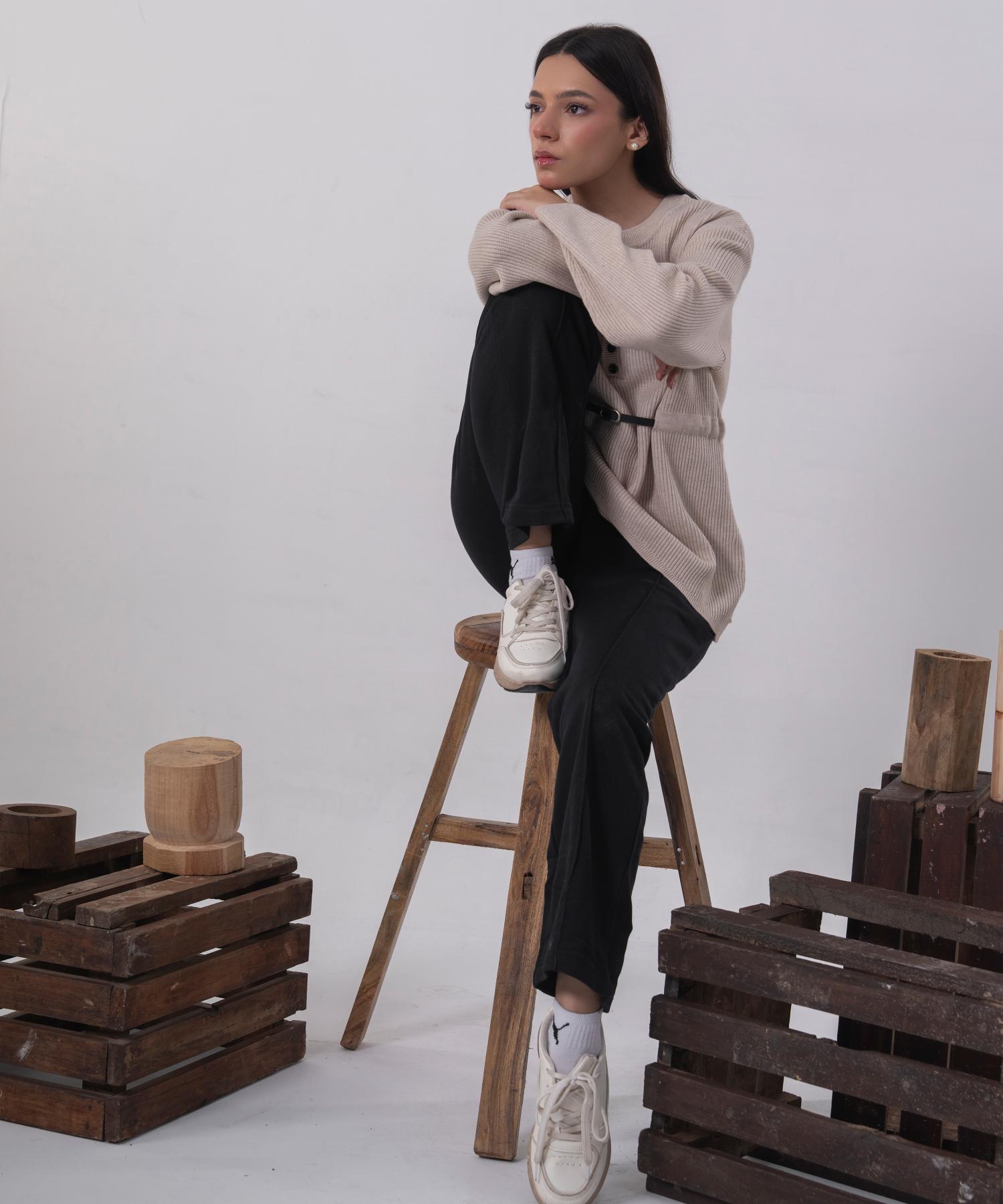 A beautifully understated knit blouse crafted in a soft ivory tone for effortless elegance. Designed with gently puffed sleeves and a relaxed silhouette, this piece offers comfort while maintaining a refined, polished look.