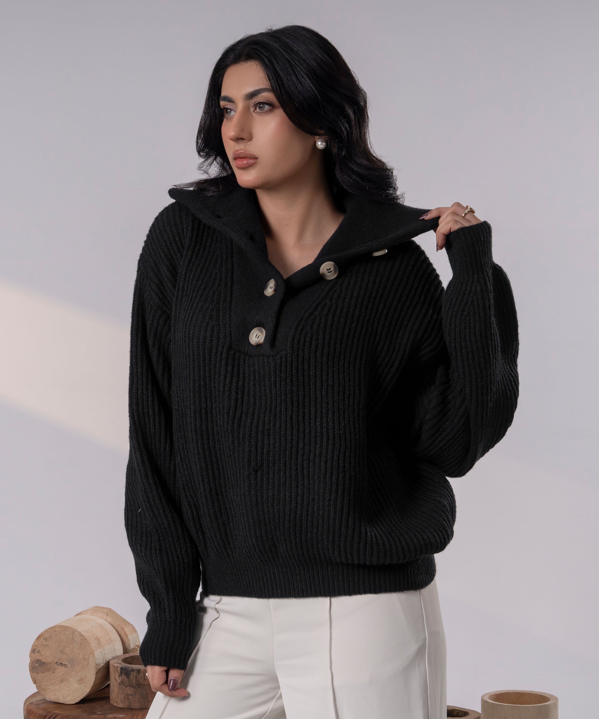 The Asymmetric Button-Neck Pullover (Noir)