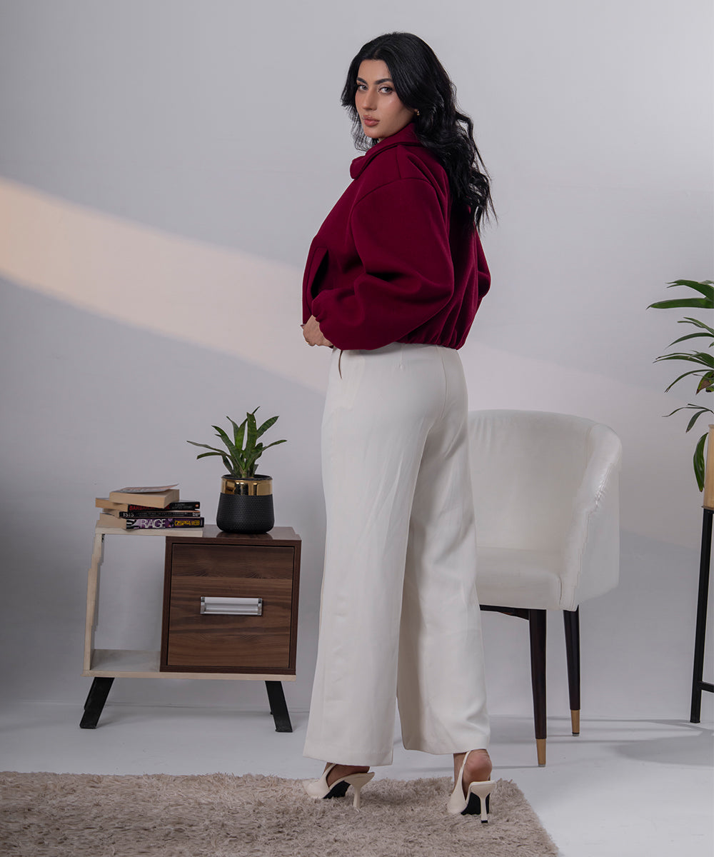Designed for warmth with elevated elegance, this ivory knit jacket features a plush faux fur collar that adds instant luxury to a timeless silhouette. The soft textured upper contrasts beautifully with the ribbed knit lower half, creating a refined layered look in a single piece.