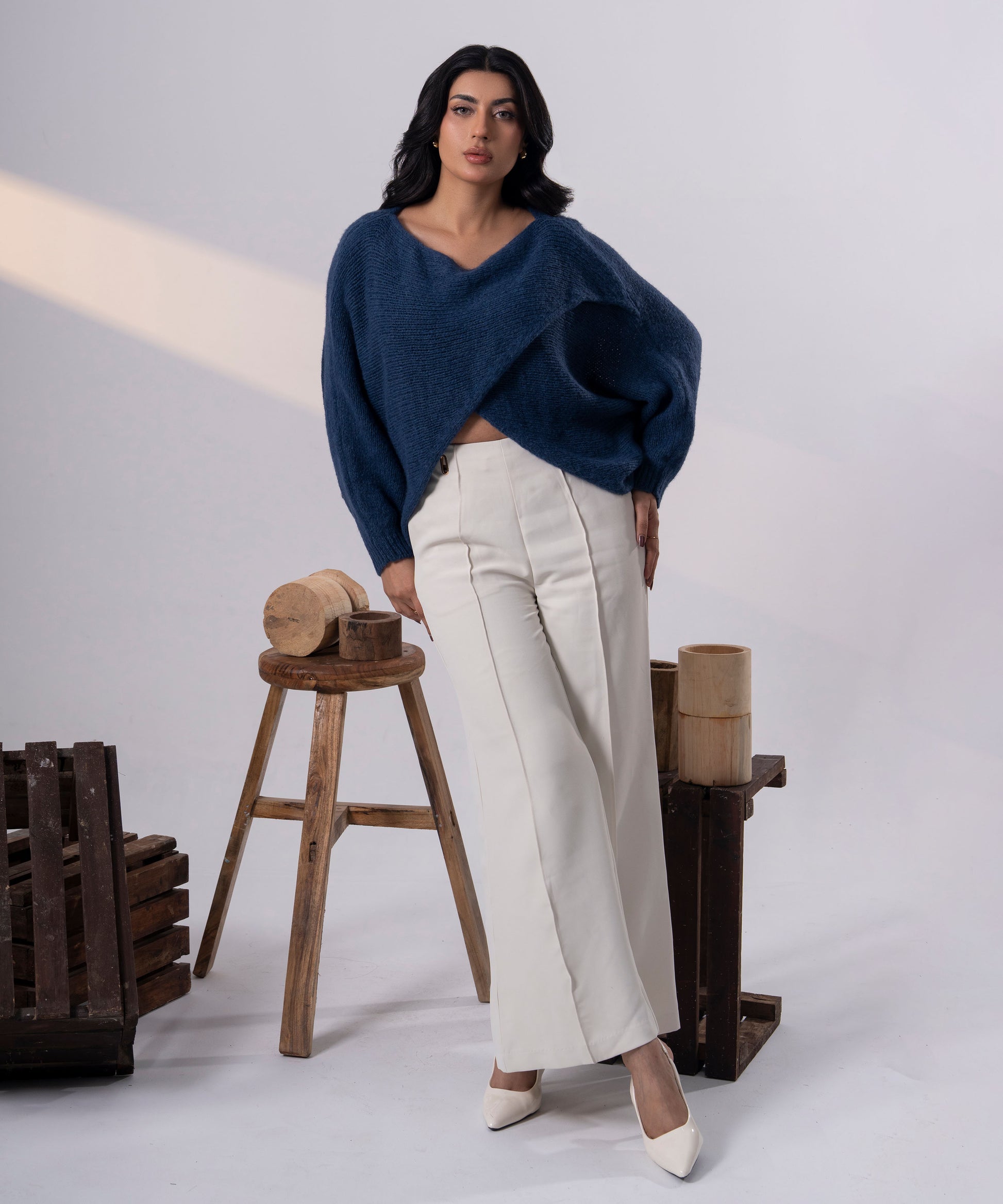 Cool tones for effortless layering. The Minimalist Cocoon Cape in Slate features a unique crossover front design that drapes beautifully over the body. The textured blue knit creates a relaxed, batwing silhouette, perfect for throwing over a white tee and jeans. Why You'll Love It: